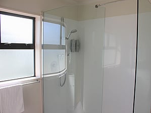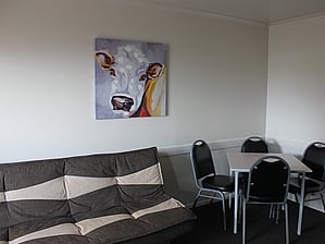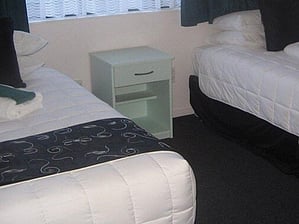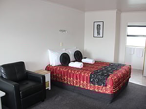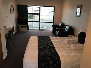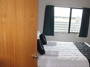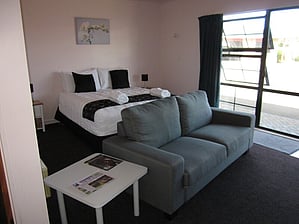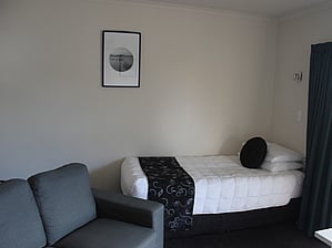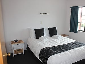 A large 1-bedroom unit with a queen-size bed in the lounge and 2 single beds in the bedroom.