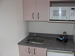 There is a queen-size bed in one room and 2 single beds in the other. These rooms also have a fold-out couch in the lounge for additional guests.
